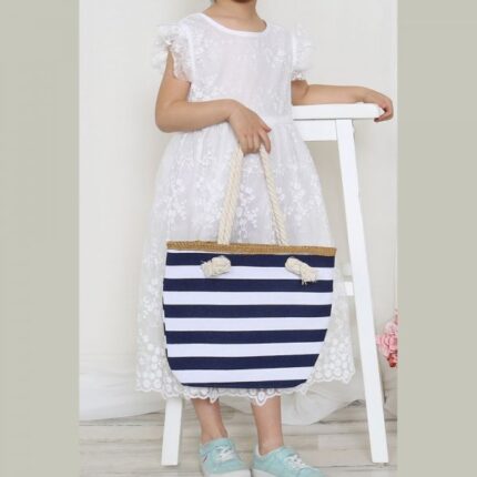 S18-3-4-HDG3912NV – KIDS STRIPED PRINT SUMMER TOTE BAG-NAVY/6PCS