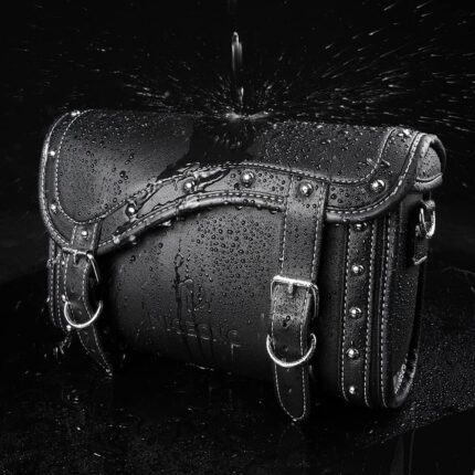 Vintage Motorcycle Front Fork Bag, Universal Motorcycle Handlebar Bag, Waterproof, Black, 1.5L, Universal Fit