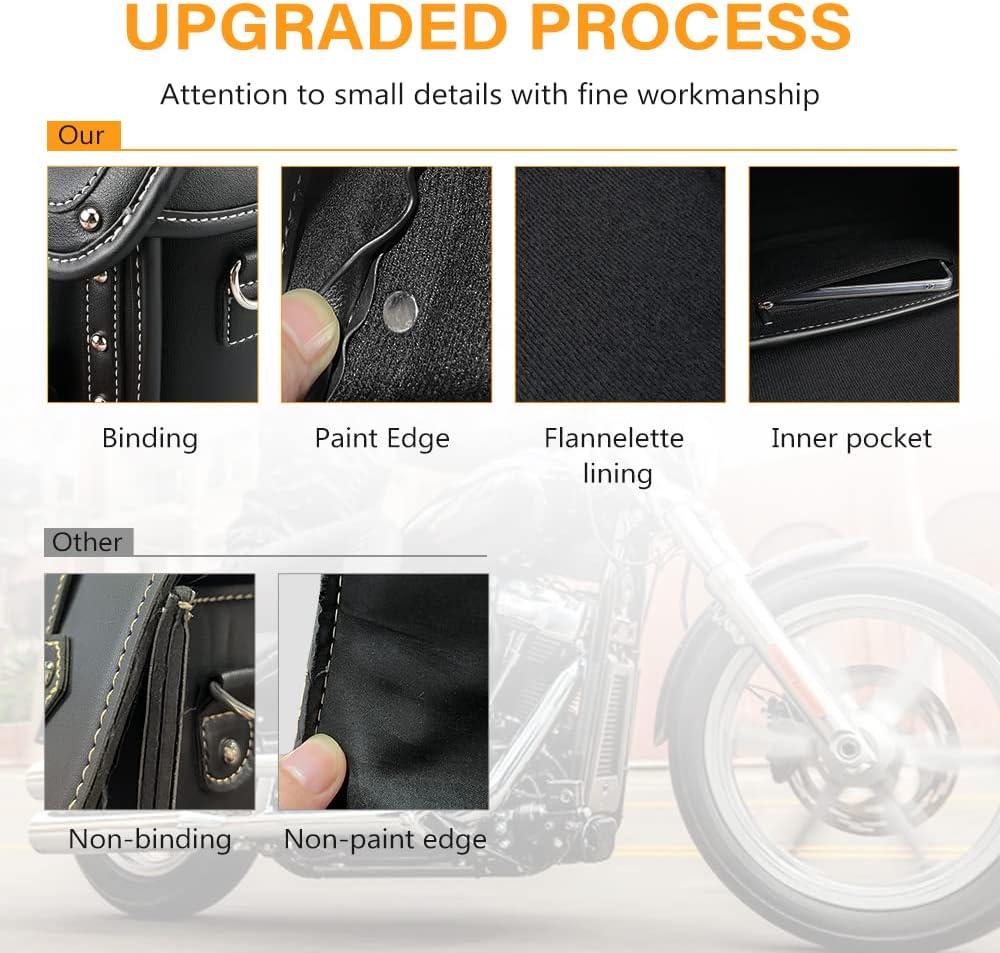- ★【Premium Fabric】: The motorcycle front fork bag is classic Cowhide Lines Leather style, made of PU poly urethane leather, which has better physical properties, resistant to torsion, better softness, easily withstand light rain.(Better to use the given protecting cover for best performance of water preventing)