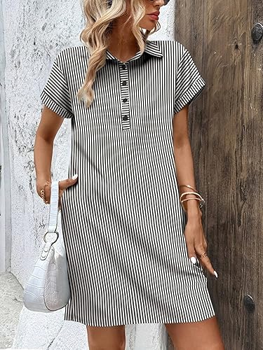 - 【Unique Design】Short sleeves, button-down closure, side hidden pockets, basic v neck collar and classic solid color. Simple and generous loose polo dress for a casual and stylish look.